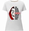 Женская приталенная премиум-футболка собственного производства. Выполнена из качественной ткани (95% хлопок, 5% эластан) — плотная, мягкая и приятная к телу. Принт Паперовий дім професор можно нанести на грудь, спину или рукав.