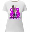 Женская приталенная премиум-футболка собственного производства. Выполнена из качественной ткани (95% хлопок, 5% эластан) — плотная, мягкая и приятная к телу. Принт Bunny Best Friend можно нанести на грудь, спину или рукав.
