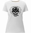 Женская приталенная премиум-футболка собственного производства. Выполнена из качественной ткани (95% хлопок, 5% эластан) — плотная, мягкая и приятная к телу. Принт Череп з сигарою можно нанести на грудь, спину или рукав.