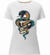 Женская приталенная премиум-футболка собственного производства. Выполнена из качественной ткани (95% хлопок, 5% эластан) — плотная, мягкая и приятная к телу. Принт Череп зі змією можно нанести на грудь, спину или рукав.