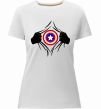 Женская приталенная премиум-футболка собственного производства. Выполнена из качественной ткани (95% хлопок, 5% эластан) — плотная, мягкая и приятная к телу. Принт Costume Captain America можно нанести на грудь, спину или рукав.