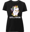 Женская приталенная премиум-футболка собственного производства. Выполнена из качественной ткани (95% хлопок, 5% эластан) — плотная, мягкая и приятная к телу. Принт Cute but psycho можно нанести на грудь, спину или рукав.