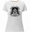 Женская приталенная премиум-футболка собственного производства. Выполнена из качественной ткани (95% хлопок, 5% эластан) — плотная, мягкая и приятная к телу. Принт Діва скелет можно нанести на грудь, спину или рукав.
