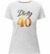 Женская приталенная премиум-футболка собственного производства. Выполнена из качественной ткани (95% хлопок, 5% эластан) — плотная, мягкая и приятная к телу. Принт Dirty 40 golden можно нанести на грудь, спину или рукав.