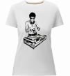 Женская приталенная премиум-футболка собственного производства. Выполнена из качественной ткани (95% хлопок, 5% эластан) — плотная, мягкая и приятная к телу. Принт DJ Bruce Lee можно нанести на грудь, спину или рукав.