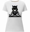 Женская приталенная премиум-футболка собственного производства. Выполнена из качественной ткани (95% хлопок, 5% эластан) — плотная, мягкая и приятная к телу. Принт DJ CAT можно нанести на грудь, спину или рукав.