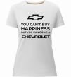 Женская приталенная премиум-футболка собственного производства. Выполнена из качественной ткани (95% хлопок, 5% эластан) — плотная, мягкая и приятная к телу. Принт Drive a Chevrolet можно нанести на грудь, спину или рукав.