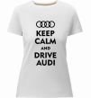 Женская приталенная премиум-футболка собственного производства. Выполнена из качественной ткани (95% хлопок, 5% эластан) — плотная, мягкая и приятная к телу. Принт Drive audi можно нанести на грудь, спину или рукав.