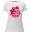 Женская приталенная премиум-футболка собственного производства. Выполнена из качественной ткани (95% хлопок, 5% эластан) — плотная, мягкая и приятная к телу. Принт Enjoy every moment summer можно нанести на грудь, спину или рукав.