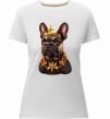 Женская приталенная премиум-футболка собственного производства. Выполнена из качественной ткани (95% хлопок, 5% эластан) — плотная, мягкая и приятная к телу. Принт French bulldog king можно нанести на грудь, спину или рукав.