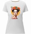 Женская приталенная премиум-футболка собственного производства. Выполнена из качественной ткани (95% хлопок, 5% эластан) — плотная, мягкая и приятная к телу. Принт Фріда Кало з вінком можно нанести на грудь, спину или рукав.