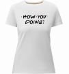 Женская приталенная премиум-футболка собственного производства. Выполнена из качественной ткани (95% хлопок, 5% эластан) — плотная, мягкая и приятная к телу. Принт Friends how you doing можно нанести на грудь, спину или рукав.