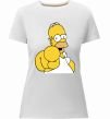 Женская приталенная премиум-футболка собственного производства. Выполнена из качественной ткани (95% хлопок, 5% эластан) — плотная, мягкая и приятная к телу. Принт Гомер Сімпсон показує пальцем можно нанести на грудь, спину или рукав.