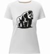 Женская приталенная премиум-футболка собственного производства. Выполнена из качественной ткани (95% хлопок, 5% эластан) — плотная, мягкая и приятная к телу. Принт Горила сидить можно нанести на грудь, спину или рукав.