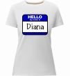 Женская приталенная премиум-футболка собственного производства. Выполнена из качественной ткани (95% хлопок, 5% эластан) — плотная, мягкая и приятная к телу. Принт Hello my name is Diana можно нанести на грудь, спину или рукав.