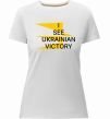 Женская приталенная премиум-футболка собственного производства. Выполнена из качественной ткани (95% хлопок, 5% эластан) — плотная, мягкая и приятная к телу. Принт I see Ukrainian victory можно нанести на грудь, спину или рукав.