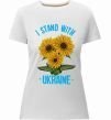 Женская приталенная премиум-футболка собственного производства. Выполнена из качественной ткани (95% хлопок, 5% эластан) — плотная, мягкая и приятная к телу. Принт I stand with Ukraine sunflower можно нанести на грудь, спину или рукав.
