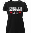 Женская приталенная премиум-футболка собственного производства. Выполнена из качественной ткани (95% хлопок, 5% эластан) — плотная, мягкая и приятная к телу. Принт I'm here but my heart is in Lviv можно нанести на грудь, спину или рукав.