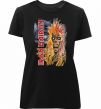 Женская приталенная премиум-футболка собственного производства. Выполнена из качественной ткани (95% хлопок, 5% эластан) — плотная, мягкая и приятная к телу. Принт Iron Maiden вертикальний напис можно нанести на грудь, спину или рукав.