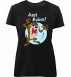 Женская приталенная премиум-футболка собственного производства. Выполнена из качественной ткани (95% хлопок, 5% эластан) — плотная, мягкая и приятная к телу. Принт Just relax Taz можно нанести на грудь, спину или рукав.