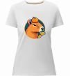 Женская приталенная премиум-футболка собственного производства. Выполнена из качественной ткани (95% хлопок, 5% эластан) — плотная, мягкая и приятная к телу. Принт Капібара мандарин можно нанести на грудь, спину или рукав.