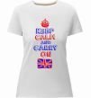 Женская приталенная премиум-футболка собственного производства. Выполнена из качественной ткани (95% хлопок, 5% эластан) — плотная, мягкая и приятная к телу. Принт Keep calm and carry on England можно нанести на грудь, спину или рукав.
