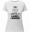 Женская приталенная премиум-футболка собственного производства. Выполнена из качественной ткани (95% хлопок, 5% эластан) — плотная, мягкая и приятная к телу. Принт Keep calm and drive Land Rover можно нанести на грудь, спину или рукав.