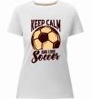 Женская приталенная премиум-футболка собственного производства. Выполнена из качественной ткани (95% хлопок, 5% эластан) — плотная, мягкая и приятная к телу. Принт Keep calm and love Soccer можно нанести на грудь, спину или рукав.