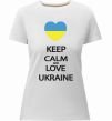 Женская приталенная премиум-футболка собственного производства. Выполнена из качественной ткани (95% хлопок, 5% эластан) — плотная, мягкая и приятная к телу. Принт Keep calm and love Ukraine можно нанести на грудь, спину или рукав.