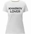 Женская приталенная премиум-футболка собственного производства. Выполнена из качественной ткани (95% хлопок, 5% эластан) — плотная, мягкая и приятная к телу. Принт Kharkiv lover можно нанести на грудь, спину или рукав.