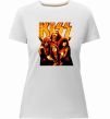 Женская приталенная премиум-футболка собственного производства. Выполнена из качественной ткани (95% хлопок, 5% эластан) — плотная, мягкая и приятная к телу. Принт Kiss end of the road можно нанести на грудь, спину или рукав.