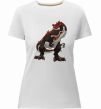 Женская приталенная премиум-футболка собственного производства. Выполнена из качественной ткани (95% хлопок, 5% эластан) — плотная, мягкая и приятная к телу. Принт Червоний динозавр можно нанести на грудь, спину или рукав.
