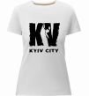 Женская приталенная премиум-футболка собственного производства. Выполнена из качественной ткани (95% хлопок, 5% эластан) — плотная, мягкая и приятная к телу. Принт KV Kyiv City можно нанести на грудь, спину или рукав.