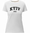 Женская приталенная премиум-футболка собственного производства. Выполнена из качественной ткани (95% хлопок, 5% эластан) — плотная, мягкая и приятная к телу. Принт Kyiv est можно нанести на грудь, спину или рукав.