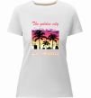 Женская приталенная премиум-футболка собственного производства. Выполнена из качественной ткани (95% хлопок, 5% эластан) — плотная, мягкая и приятная к телу. Принт Los Angeles Golden City можно нанести на грудь, спину или рукав.