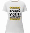 Женская приталенная премиум-футболка собственного производства. Выполнена из качественной ткани (95% хлопок, 5% эластан) — плотная, мягкая и приятная к телу. Принт Кращий у світі адміністратор можно нанести на грудь, спину или рукав.