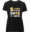 Женская приталенная премиум-футболка собственного производства. Выполнена из качественной ткани (95% хлопок, 5% эластан) — плотная, мягкая и приятная к телу. Принт Кращий у світі босс можно нанести на грудь, спину или рукав.