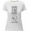 Женская приталенная премиум-футболка собственного производства. Выполнена из качественной ткани (95% хлопок, 5% эластан) — плотная, мягкая и приятная к телу. Принт Ля яке я вже старе можно нанести на грудь, спину или рукав.