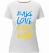 Женская приталенная премиум-футболка собственного производства. Выполнена из качественной ткани (95% хлопок, 5% эластан) — плотная, мягкая и приятная к телу. Принт Make love not war text можно нанести на грудь, спину или рукав.