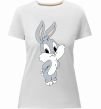 Женская приталенная премиум-футболка собственного производства. Выполнена из качественной ткани (95% хлопок, 5% эластан) — плотная, мягкая и приятная к телу. Принт Маленький Бакс Банні можно нанести на грудь, спину или рукав.