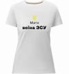 Женская приталенная премиум-футболка собственного производства. Выполнена из качественной ткани (95% хлопок, 5% эластан) — плотная, мягкая и приятная к телу. Принт Мати воїна ЗСУ можно нанести на грудь, спину или рукав.