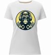 Женская приталенная премиум-футболка собственного производства. Выполнена из качественной ткани (95% хлопок, 5% эластан) — плотная, мягкая и приятная к телу. Принт Мавпа в навушниках і окулярах можно нанести на грудь, спину или рукав.