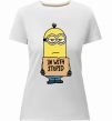 Женская приталенная премиум-футболка собственного производства. Выполнена из качественной ткани (95% хлопок, 5% эластан) — плотная, мягкая и приятная к телу. Принт Minion I`m with stupid можно нанести на грудь, спину или рукав.