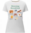 Женская приталенная премиум-футболка собственного производства. Выполнена из качественной ткани (95% хлопок, 5% эластан) — плотная, мягкая и приятная к телу. Принт Morning breakfast можно нанести на грудь, спину или рукав.