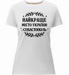 Женская приталенная премиум-футболка собственного производства. Выполнена из качественной ткани (95% хлопок, 5% эластан) — плотная, мягкая и приятная к телу. Принт Найкраще місто України Севастополь можно нанести на грудь, спину или рукав.