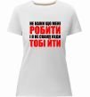 Женская приталенная премиум-футболка собственного производства. Выполнена из качественной ткани (95% хлопок, 5% эластан) — плотная, мягкая и приятная к телу. Принт Не кажи що мені робити можно нанести на грудь, спину или рукав.