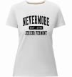 Женская приталенная премиум-футболка собственного производства. Выполнена из качественной ткани (95% хлопок, 5% эластан) — плотная, мягкая и приятная к телу. Принт Nevermore vermont можно нанести на грудь, спину или рукав.