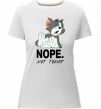 Женская приталенная премиум-футболка собственного производства. Выполнена из качественной ткани (95% хлопок, 5% эластан) — плотная, мягкая и приятная к телу. Принт Nope Not today можно нанести на грудь, спину или рукав.