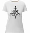 Женская приталенная премиум-футболка собственного производства. Выполнена из качественной ткани (95% хлопок, 5% эластан) — плотная, мягкая и приятная к телу. Принт Not today можно нанести на грудь, спину или рукав.