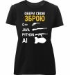 Женская приталенная премиум-футболка собственного производства. Выполнена из качественной ткани (95% хлопок, 5% эластан) — плотная, мягкая и приятная к телу. Принт Обери свою зброю можно нанести на грудь, спину или рукав.